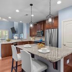 Step inside to be greeted by stunning grand stairs with open railings that set the tone for the inviting ambiance throughout. The first-floor master suite offers a retreat where you can unwind and relax after a busy day. You’ll find this home adorned with luxurious touches, including exquisite ceramic tile in the bathrooms and serene spaces like the luxurious garden bath that invites tranquil evenings. A standout feature of this home is the impressive Chef’s Kitchen. Picture yourself whipping up gourmet meals on the center island surrounded by sleek granite countertops and stainless steel appliances. With two breakfast bars, meals become a delightful experience, whether you’re hosting friends or enjoying a quiet morning coffee.
